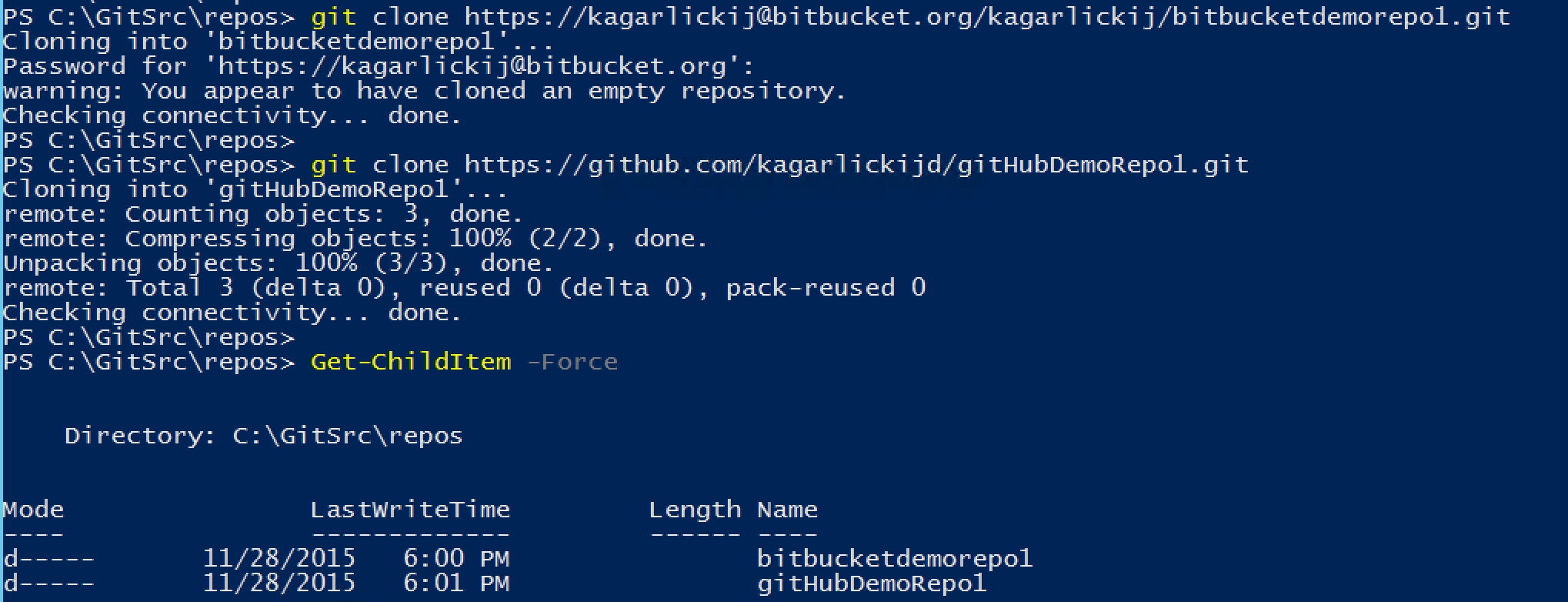 Склонируем пустые репозитории используя SSH:
