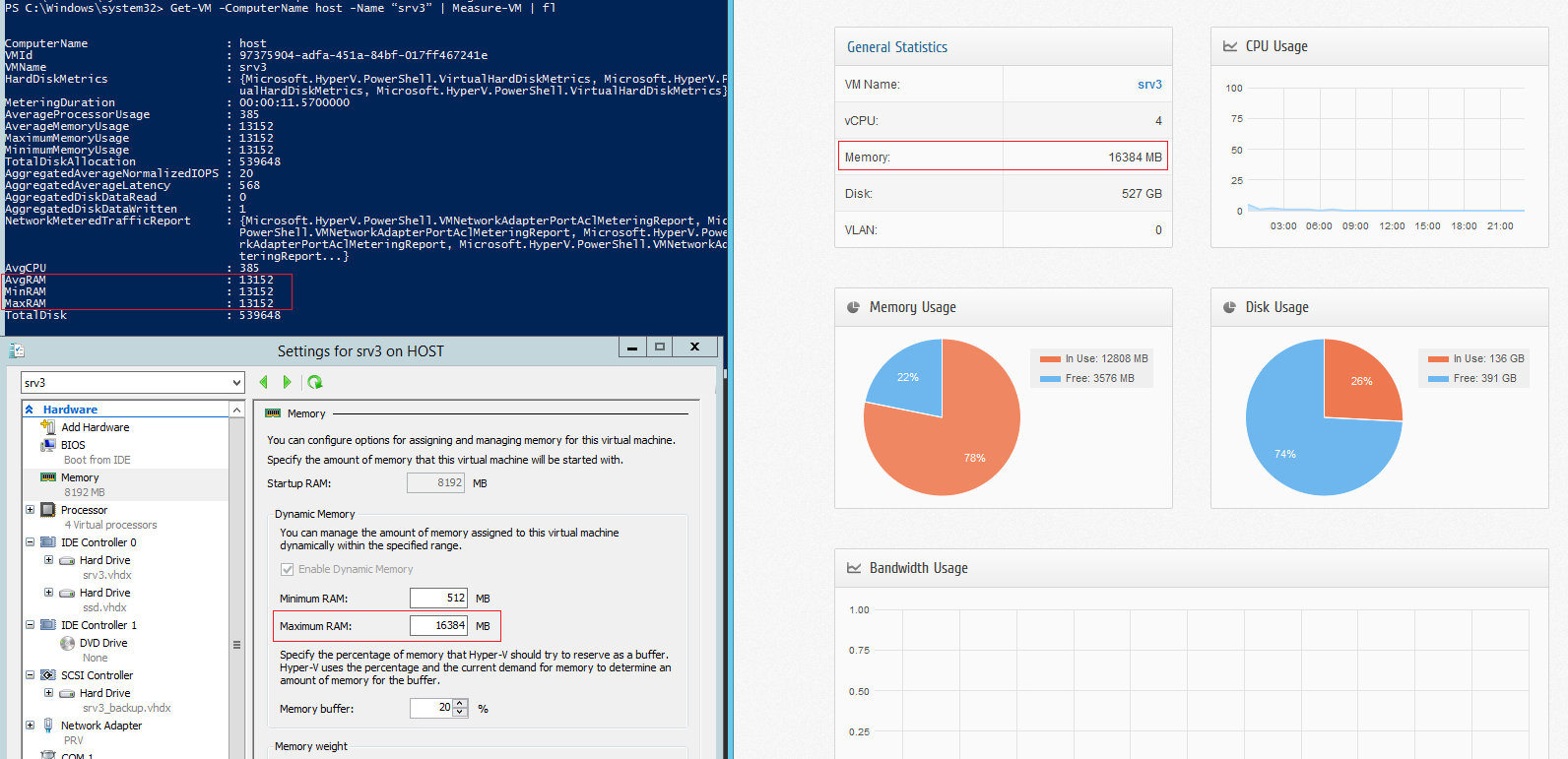 Для тех виртуальных машин, в процессе установки которых была включена динамическая память, но порог руками задан не был, он равен 1Тб, и PoSHStats покажет именно это: